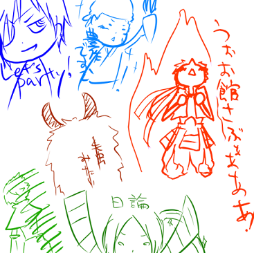 描いたのはいちお伊達と小十郎と幸村とお館様と佐助みたいなんと毛利・・・。